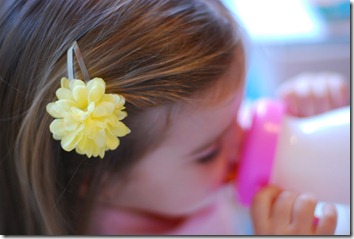 I was stumped for a little while on this one. I could have put together some clothes and photographed them or lined up shoes or something. Then when we were eating breakfast, both girls had the same hair barrette in their hair. It was so cute. Since they always have their hair pulled back, I thought that a pic of their hair in barrette's would be perfect for this assignment.